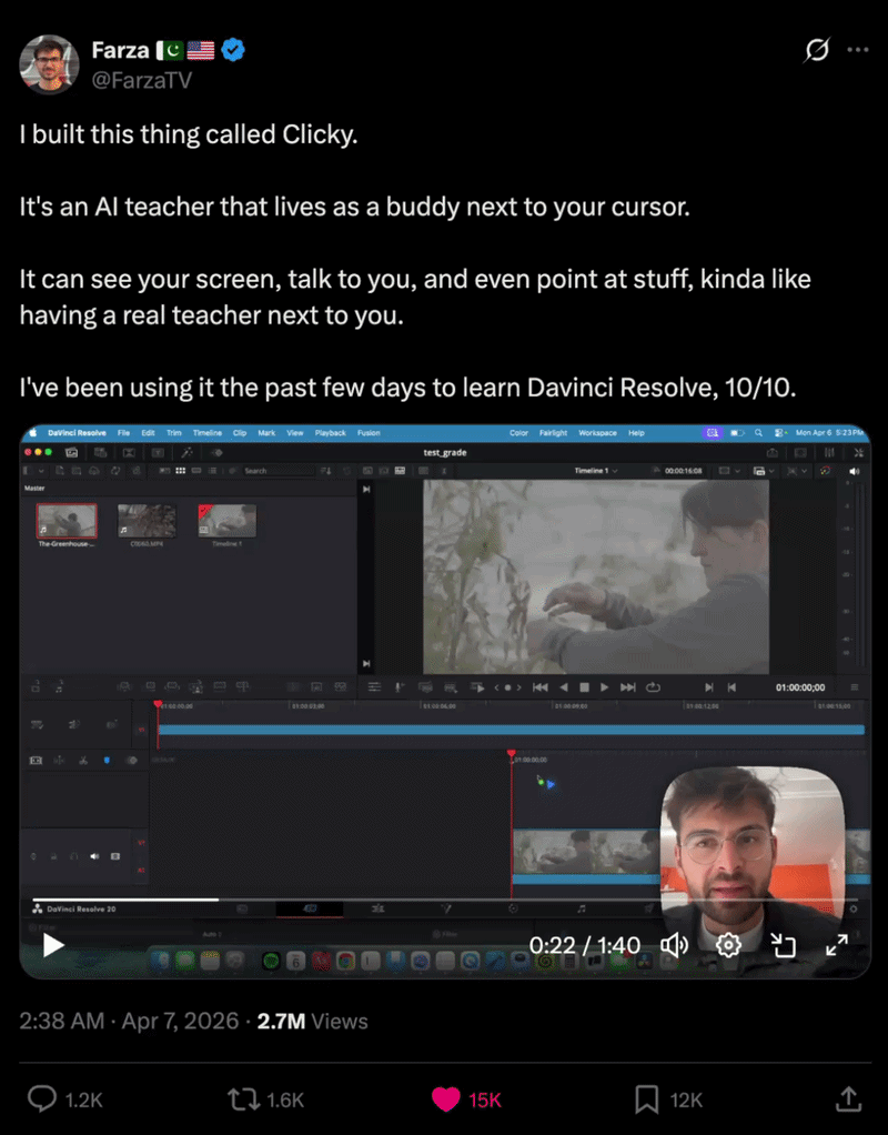 Perfect for anyone learning a new tool or software, Clicky removes the frustration of not knowing where to click or what something means by letting you simply ask your screen.